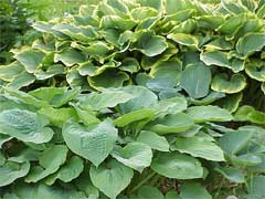 | We grow a variety of Hosta for their striking foliage. Sizes and colors range from large, blue-green to smaller, variagated yellow green and white. | |||||||
