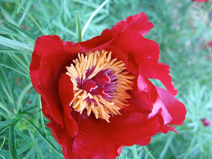 | Scarlet O'Hara: Poppy-like red to burgundy single with contrasting gold stamens. | Command Performance: Huge crimson double blooms. | ||||||||||||||||||||||||||||||||||||